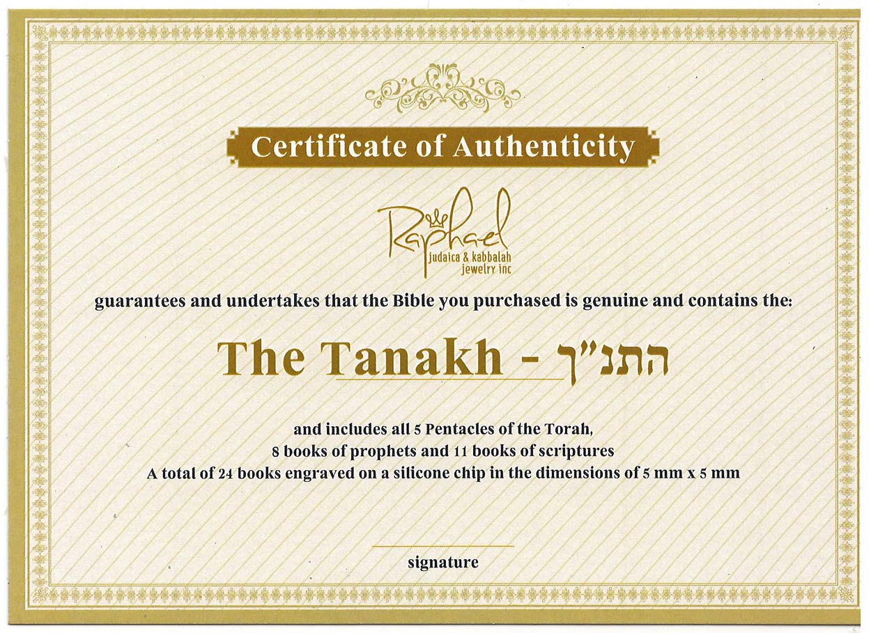 This pendant is meticulously handcrafted from silver and gold, combining the wisdom of the Kabbalistic Five Metals for enhanced energetic power and purity. At its core lies the Nano Bible—a microchip containing the full Hebrew text of the 24 books of the Tanakh (Torah, Prophets, and Writings), etched with lines thinner than a human hair. A modern miracle merged with ancient tradition.