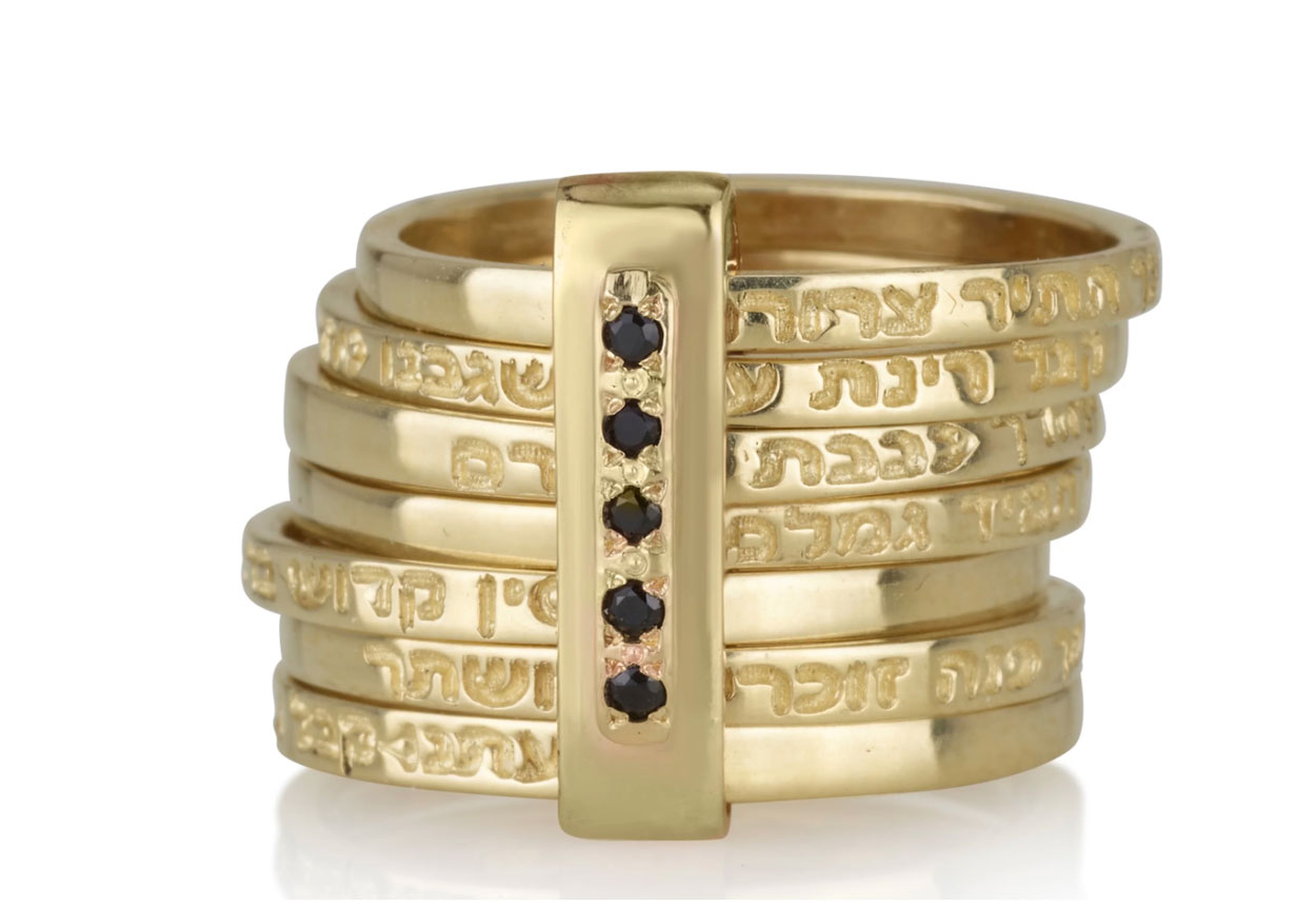 The Ana B’koach Ring by Raphael Judaica is a handcrafted 14K gold creation, set with a row of black diamonds (1.5 mm each), inspired by the powerful Kabbalistic prayer Ana B’koach—known as “Gate‑opening” for its role in spiritual elevation and divine connection.