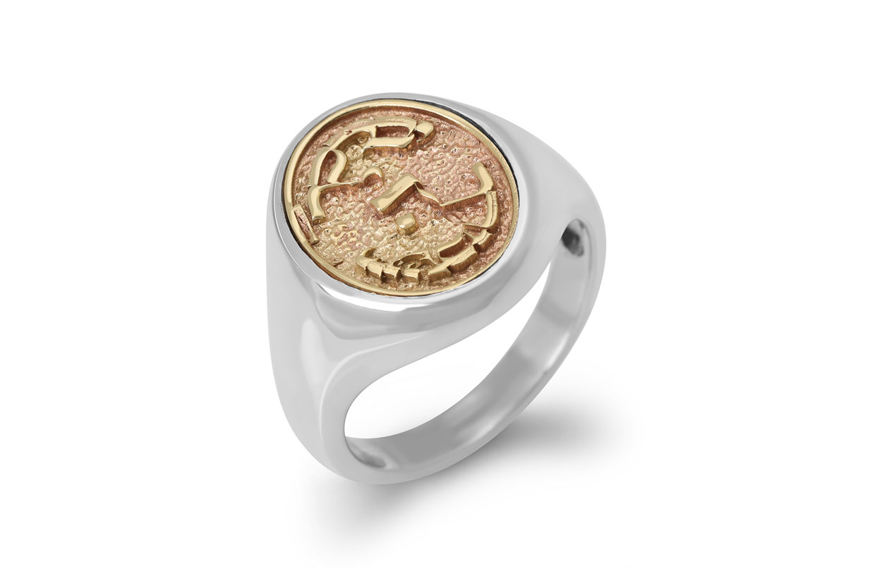 This distinctive ring features a polished sterling silver band, crowned with a round gold plaque engraved in elegant Hebrew calligraphy with the word “יברכך” (Yevarechecha). It is the first word of the iconic Priestly Blessing and serves as a daily reminder of divine favor and spiritual protection.
